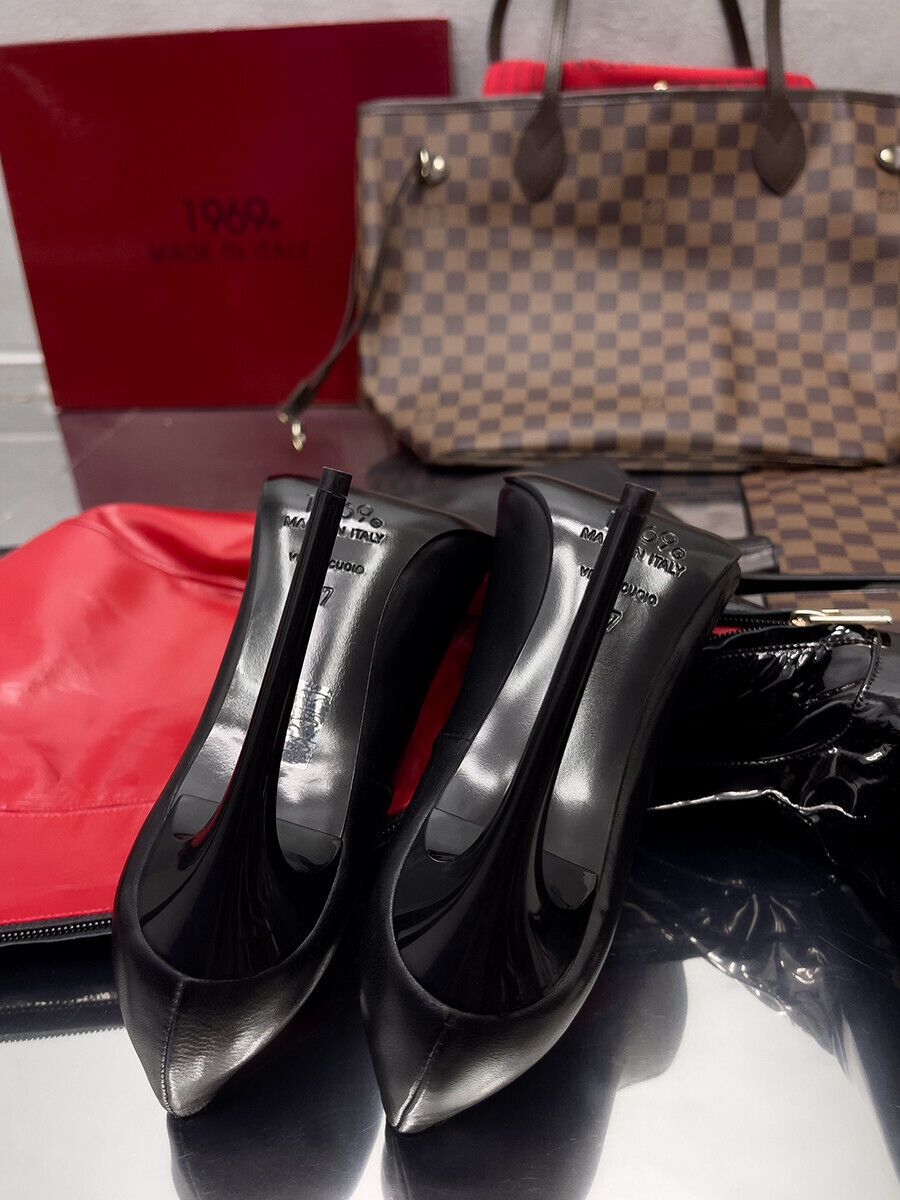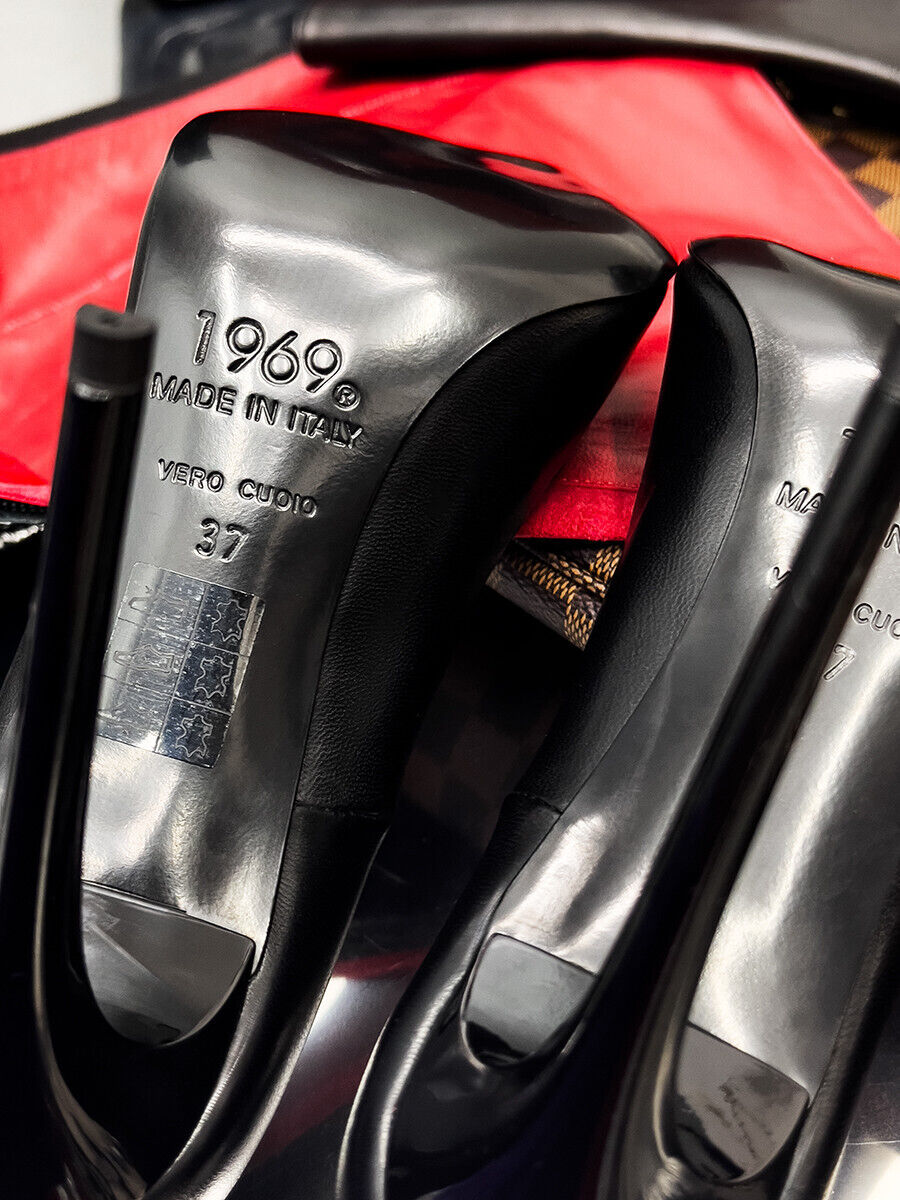 1969 Made in Italy Leather High Heels Iconic Z LX D67 Pointy Pumps Black 35 – 45