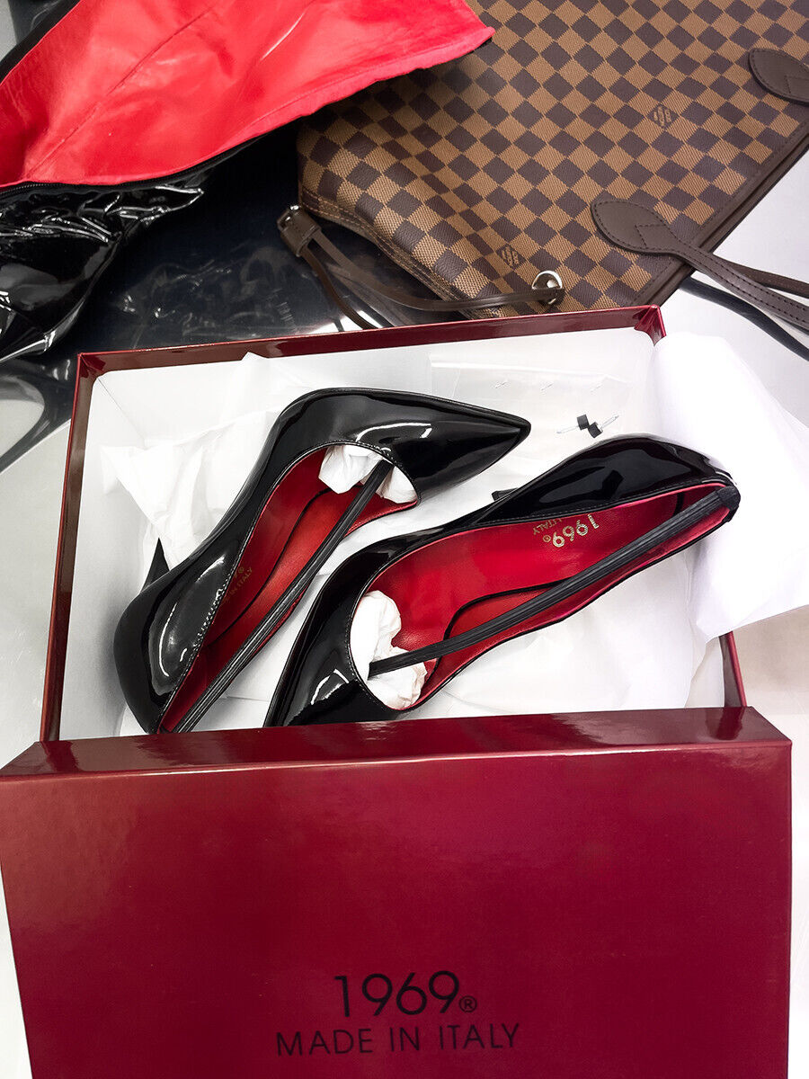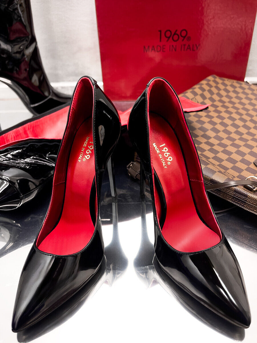 Introducing the 1969 brand’s Made in Italy pumps.”1969 Made in Italy” Patent Leather Pumps – Inspired by the Iconic Pigalle StyleElevate your style with these 1969 Made in Italy pumps, inspired by the legendary Pigalle design. Crafted from premium Italian patent leather, these heels offer a sleek, sophisticated look perfect for any occasion.✨ Features:✔️ Authentic Made in Italy craftsmanship for unmatched quality✔️ Sharp pointed-toe silhouette for an effortlessly chic aesthetic✔️ Glossy patent leather finish for a touch of luxury✔️ Stiletto high heels to elongate your legs and enhance your elegancePerfect for evening wear, office chic, or a statement everyday look. Timeless, stylish, and irresistibly elegant!📦 Fast worldwide shipping – Order now! SIZES AVAILABLE: 35, 36, 37, 38, 39, 40, 41, 42, 43, 44, 45.BUYER CAN SELECT SIZE.PLEASE ASK ALL QUESTIONS BEFORE YOU BUY. Links Our Store Sale Items Feedback About us More items Are you looking for something similar? Show more items like this Contact Send us a message