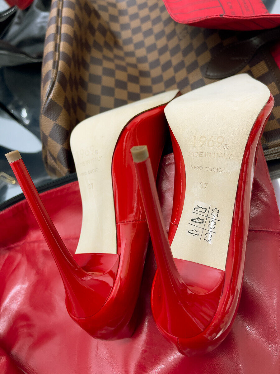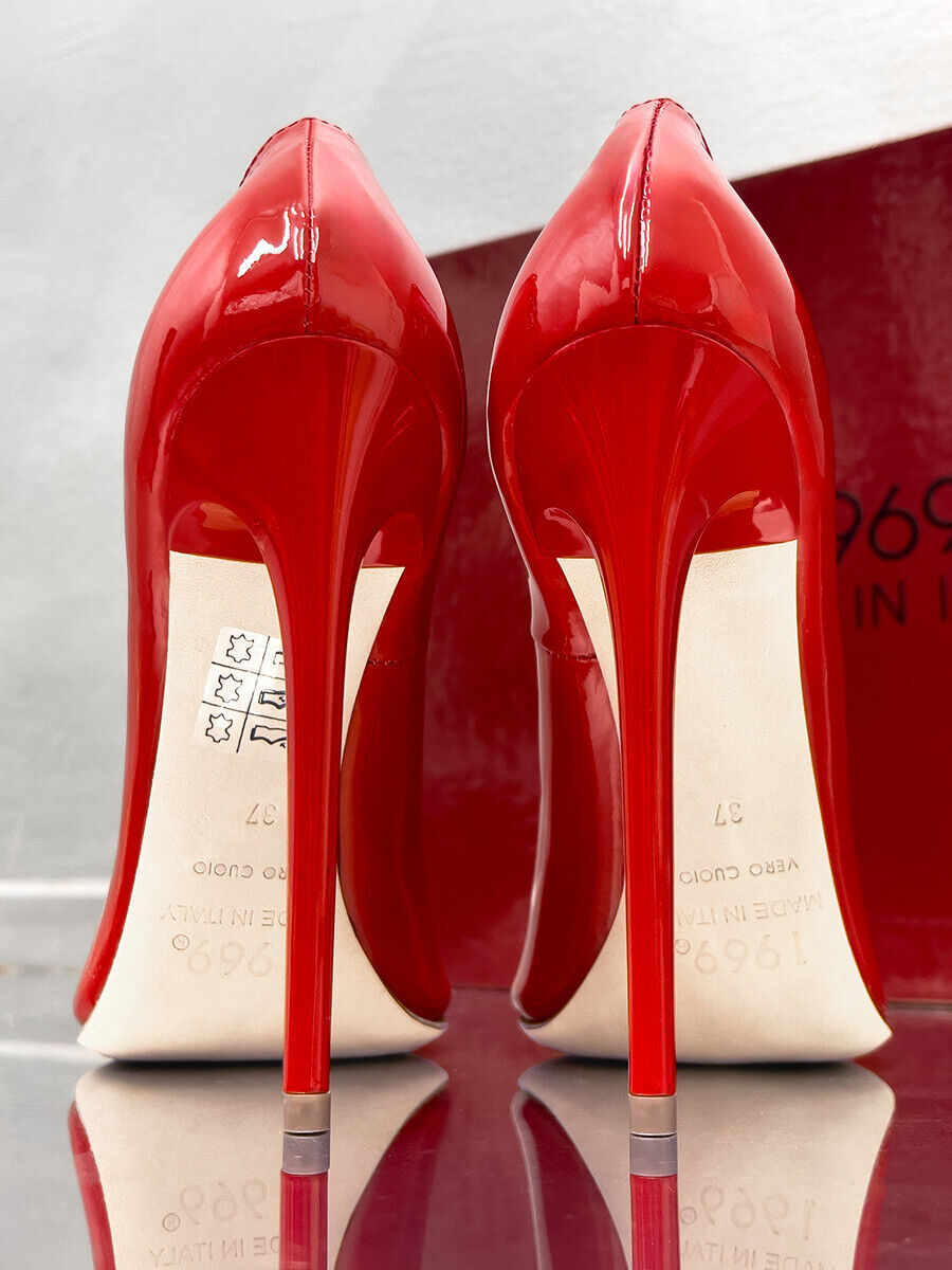 1969 Made in Italy Patent Leather High Heels Iconic D68 Pointy Pumps Red 35-45